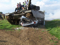 A mid day lunch will be served and refreshments available all day inclusive. The man or normally woman (unfortunate lads) who wins best driver, will have the chance of her team and spectators riding on the Chieftain during her car crush finale. Days are held on selected Saturday's throughout the year and run from 9:00 to 18:30 depending on daylight hours. Spectators are welcome, a £30.00 charge covers food throughout the day and rides. These need to be booked at least 5 days from the event, but can be paid for on the day. |