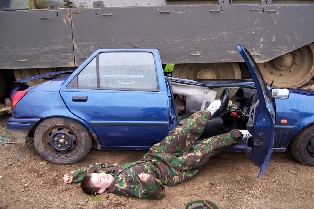No Girls Allowed I was proud to tell my chaps GIRLS ALOUD were coming over to crush a car .The chaps jumped up and down with excitement whooping with joy hugging and kissing each other. Its rare they come in to contact with women and these were pretty special women .They argued about which member of this red hot girl band was the cutest and how ,if they could only steal a kiss it could end in marriage and a big house in the country and all that stuff . I later realised it wasn't GIRLS ALOUD the pop group it was NO GIRLS ALLOWED a kids TV show for young lads .I hadn't the heart to tell them and anything that may encourage them to bath could only be a good thing whatever the reason. When the big day came they all ran around in their best uniforms smelling of Hi karate and brut 55 looking as important as possible and remembering not to pick their noses etc .The film crew turned up bang on time and set up the cameras .Then a small Peugeot pulled in the yard and out stepped this chap with two young lads Arron and Sam. Arron with a big smile beaming across his face told us he was from NO GIRLS ALLOWED and had won a chieftain tank car crush that was going out on the telly. It took my chaps a while to realise the totty wouldn’t be arriving after all, and any way who needs a woman when you already have an overdraft. Arron was a bright young lad who looked like he was up for anything and sure enough he was, he did a smashing job left track straight up the middle of the car stopping perfectly on the top to get the most dramatic pictures afterwards, a real cool dude in fact if you want a sneak preview we attached a video of the crush. My boys came out too but in the end boredom got the better of them, these film jobs can drag on a bit and Danny put a bucket on his head understandably and Ashley fell asleep under a camera tripod .Loads of fun was had by all and im sure the last owner of the Fiesta will be thrilled his car was a star. PS GIRLS ALLOUD if you’re out their im sure we could muster up a beamer or merc for you. |