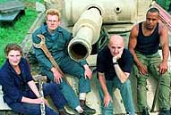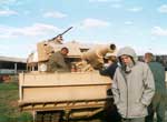 is inclined to get very thirsty in the evenings! The show went great, all the camera and sound chappies came too and lots of the other Tanks a lot instructors rolled up to help which was handy because Nick, Ron, Paul and the squad were completely knackered. The tank looked very special with its new reactive armour but no one at the show recognised what sort or tank it was, inspite of Ron being a very naughty boy and telling everyone it was a challenger! It still won a cup and its last commander, Mark foster, arrived and told some pretty scary stories about those naughty Iraqis and we all agreed we won't be going there for our holidays unless we take the tank. He then explained why its name became Fosgene, he was a specialist on gases and radiation and his surname being Foster. Someone mixed this with the name of a gas called phosgene making Fosgene , which he and Nick painted on just were it used to be. Nick still thinks it's somewhere between a pig and a white elephant , but you can tell he's got a soft spot for it somewhere because he's collecting all sorts of photos of it from people far, far away and he speaks highly of Salvage squad, Alex and all that money they paid him, especially the money! Oh , and by the way,