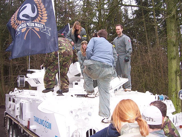 We had an enquiry from Koch media about hiring the Tanklimo to take a group of journalists to a paintball day in Basingstoke. Were always up for a bit of Tanklimoing, our contact was Rachel, told us exactly what was needed ECT, which was great we don’t like last minute surprises when were out in the stretch. She’s surprisingly manoeuvrable but does have her limits. We picked up the journalists and tracked of to a crew called Skirmish Lasham, who does paintball events, a rare bunch who dress in orange so they stand out and you can shoot at them if you get trigger happy. SAS Colin was in his element when they asked if we wanted to join in, I took his killing knife off him in case he slipped in to old habits Then did my (Now Colin look in to my eyes, look in to my eyes, its just a game, when i click my fingers you will become a pussycat and remember nothing) It almost worked but i don’t remember saying shoot my arse at close range three times. It was all great fun .Then the police caught me as normal , Rachel and her friend grabbed a couple of machine guns and took him prisoner, not sure what they had planned for him and nor had he, but he was to smart and could tell the weapons were de activated and chased them off with his riot baton. After the battle's we tracked of down the local pub and then back to Koch headquarters. Many thanks Koch, Racheal and Skirmish Lasham for getting us away from the spanners for a day Rachel hope your bruise gets better, promise it wasn’t me. Check out Skirmish Lasham for a great day Paintballing Skirmish Lasham |